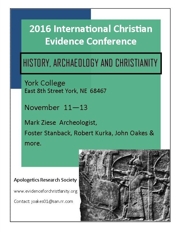 The 2016 International Christian Evidences Conference is only five weeks away. We have a great lineup of speakers and classes. The conference is at York College, in York, Nebraska from November 11-13. The theme is History, Archaeology and Christianity.