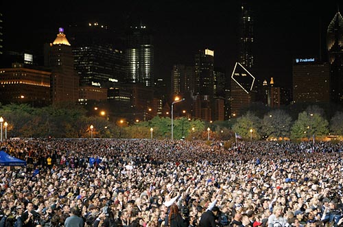 On November 5, 2008, the USA overwhelmingly elected the first African American as President! And he is from our beloved Chicago! My friend Anton Ivy called me and shared the thrill at being at Grant Park for the incredible acceptance speech event that night. I so wanted to be there, but was with my wife watching and soaking up everything. Incredibly, only 40 years after Martin Luther King, Jr. was shot and killed and riots in the same Grant Park, Barak Obama was elected by a landslide and is inspiring hope in the world.