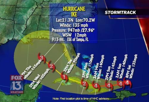 - those in the path of Hurricane Ike that is now a Category 4 storm and headed for the Bahamas and the Gulf.