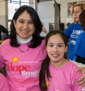 | Isabel and her mother proudly wear the Hope Scouts logo. |